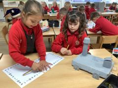 In PE we cover gymnastics and games, as well as develop our fundamental skills such as throwing , jumping and catching.As Christmas approaches, we design our very own wrapping paper in art, where we focus on monoprinting.